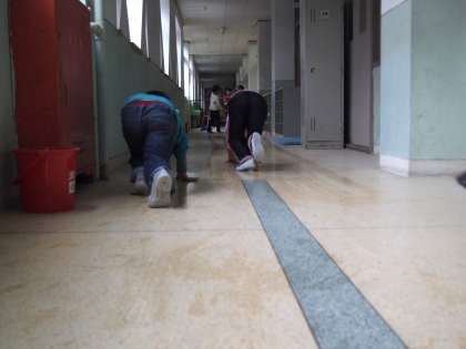 今日は雨でした。こんな日はなかなか集中して掃除に取り組むことが難しいように思います。でも,こうやって一生懸命に3つの玉をみがいている子どもたちがいます。