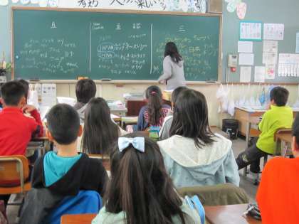 5年1組では,ALTの先生と一緒に,世界にはどんな国があるのかゲームを学習のはじめにして,英語への興味を強くしていました。