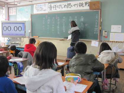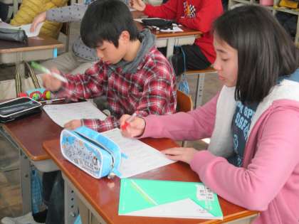 6年2組では,漢字や言葉についてプリントを使って復習していました。