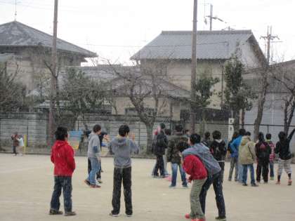 雪が舞う中 子ども達は元気に遊んでいました。