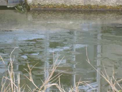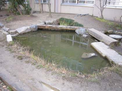 朝登校してきた子どもの手に,氷が握られていました。10時過ぎに,学校のビオトープを見ると,氷が張っていました。