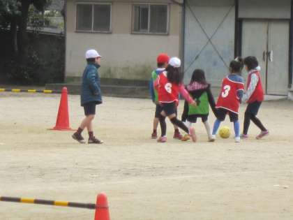 今日も寒い中,運動場でゲームを楽しんでいました。