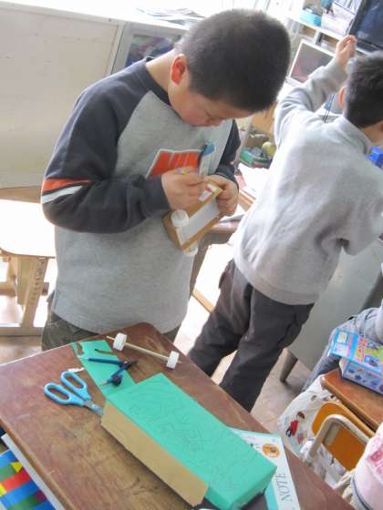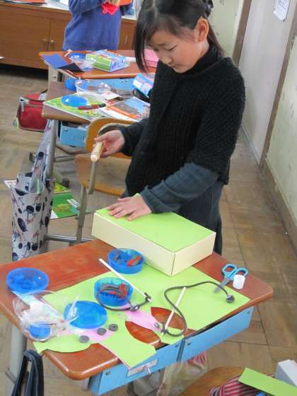 3年2組では,理科で磁石の働きを学習した後,磁石を使ったものを作っていました。