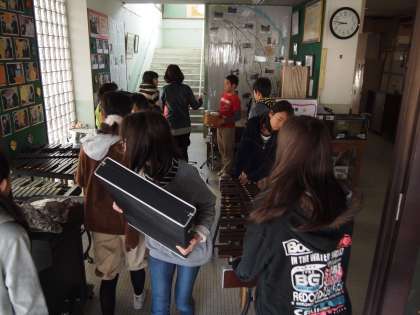 先週金曜日の「6年生を送る会」には多数の保護者の皆様にお越しいただきありがとうございました。本館に借り置きしていた楽器を6年生が音楽室に運んでくれました。「あと何日やったっけ,学校来るのん?」と聞くと「8日!」との返事。まだ実感はないようです。