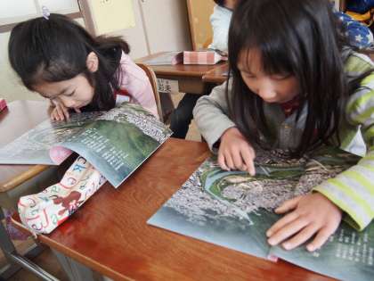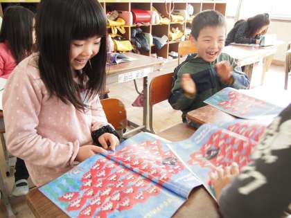 2年生は『スイミー』をモチーフにして子どもたちと「好きな九九」を紹介しています。バックの「こんぶやわかめのはやし」も素敵です。