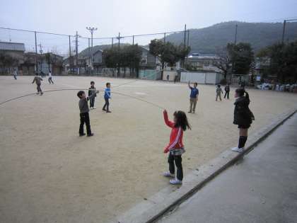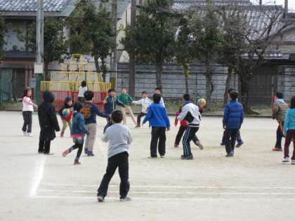 寒さを吹き飛ばすように,子ども達は元気に運動場で過ごしていました。