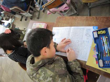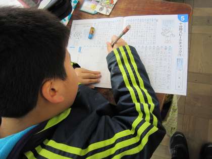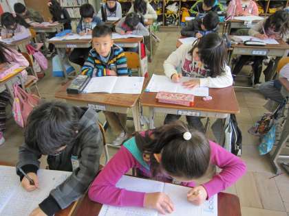 3年生は,書き写しの練習をしています。今日の課題は,「10分間スピードチェックにチャレンジ」です。ていねいにそして速く書き写す練習に取り組んでいました。