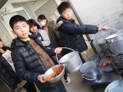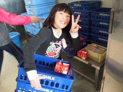 今日の給食は6年生の卒業お祝いメニューのトンカツでした。子どもたちも楽しみにしていたようです。給食室にやってきた子どもたちに「おいしかった?」と尋ねると,どの子も「おいしかったです!」と元気な声が返ってきました。