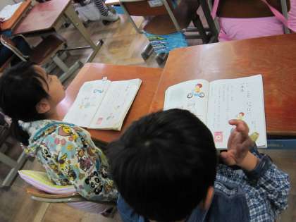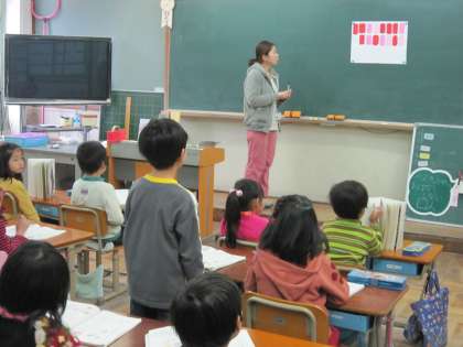 今日の1年2組では,入学してから今日までに楽しかったことやがんばったこと,できるようになったことを発表しあっていました。