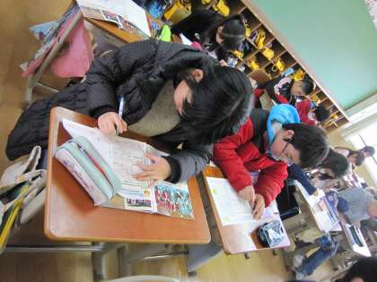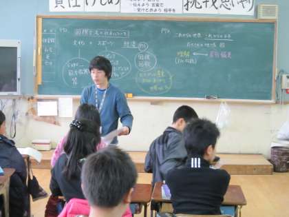 6年1組では,社会で「国際交流の仕方」について学習していました。交流として,文化・スポーツ・経済での交流についてやこれからの世界・これからの日本について考えました。