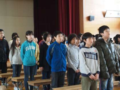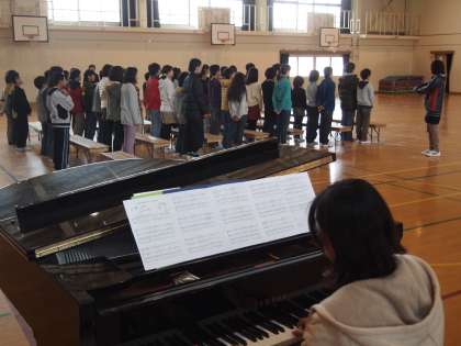 6年生は5時間目,体育館で歌と言葉の練習でした。6年生の歌は『レッツ サーチ フォー トゥモロー』です。
