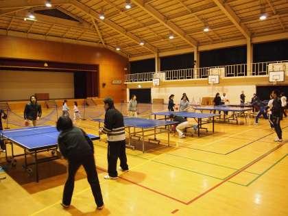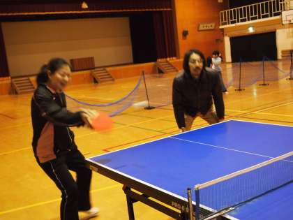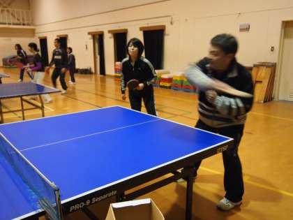 先日のバレーボールに引き続き,今日はPTAの卓球部の方々との親睦試合をしました。教職員の方は一生懸命(と言うか必死)なのですがどの顔も笑っていました。