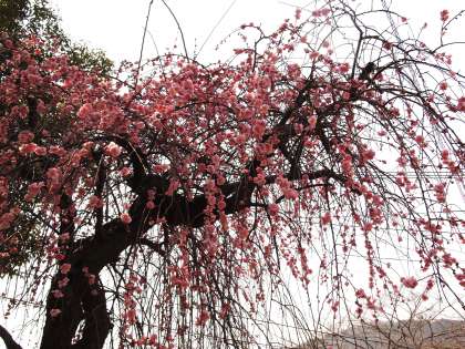 先日もご紹介しましたが,正門横のしだれ梅が満開です。この2,3日の陽気で「これぞ満開」という状態になりました。いよいよ春本番という感じですね。