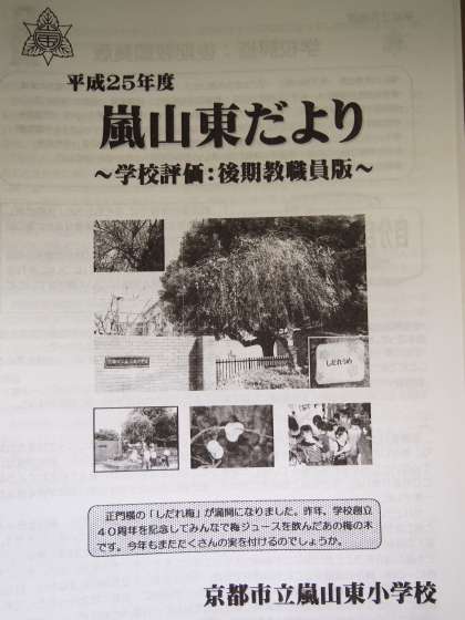 今年度最後の学校評価は後期教職員版です。表紙はただ今満開の「しだれ梅」。40周年記念事業でつくっていただいた梅ジュースのあの木です。