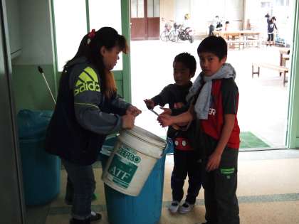 降りそうで降らないお昼の天気…。子どもたちが今日も淡々とそうじに励んでいます。