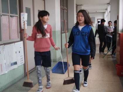 そうじが終わって教室へ戻ってくる子どもたちの表情を見るのが好きです。ささやかですが充実した気持ちが感じ取れることが多くて,「あぁ今日も頑張ったんやなぁ」と思えるからです。