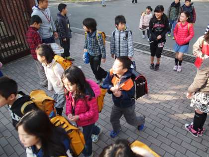 いつもながらの登校風景ですが,ちょっと上から撮ってみました。