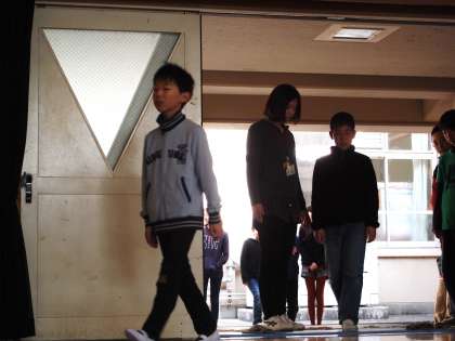 いったん外に出たら,次が「入場」の練習です。適度の緊張感を持ってやっていました。