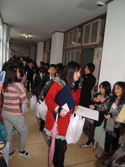 今日はあめになりましたが,52名の卒業生は元気に巣立っていきました。式の後,校舎の花道で見送られていきました。