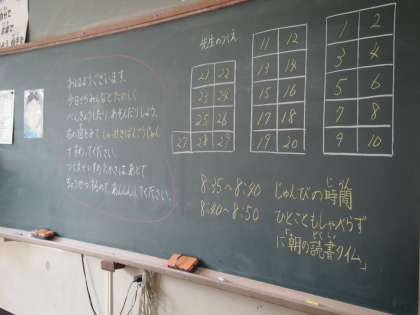 黒板には座席について書かれていました。朝の読書などについてもう1回きちんと確かめたりもしていたようです。1年生から2年生になって,自分たちで考えてできることが増えていきそうですね。