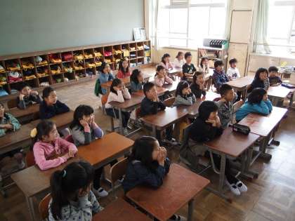こちらも学級の約束事について保本先生からお話がありました。先生が大きな声でみんなに尋ねたら,返ってきた声が小さかったので,笑いながら「もう一回!」などというやりとりがありました。