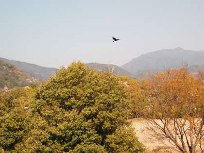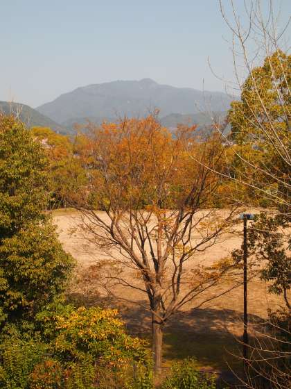 北校舎の西側から見える景色はいつも目を楽しませてくれます。今日は山桜が美しく咲いていました。カメラを右に振るとトンビが優雅に春の空を飛んでいました。
