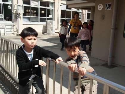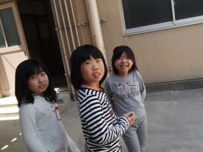 中間休みのチャイムが鳴りました。さぁ,子どもたちが出てきましたよ。