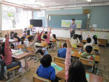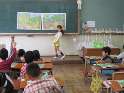 1年生は,国語の教科書を見て,何がかかれているかをみんなで探していました。