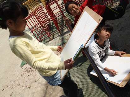 子どもたちは夢中になると,周りが少々うるさかろうと暑かろうと自分の世界に入り込むことができますね。