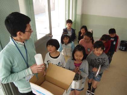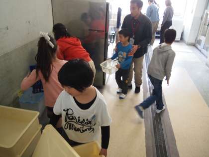 今日は初めての返却なので担任以外の職員も立ち当番をしていました。