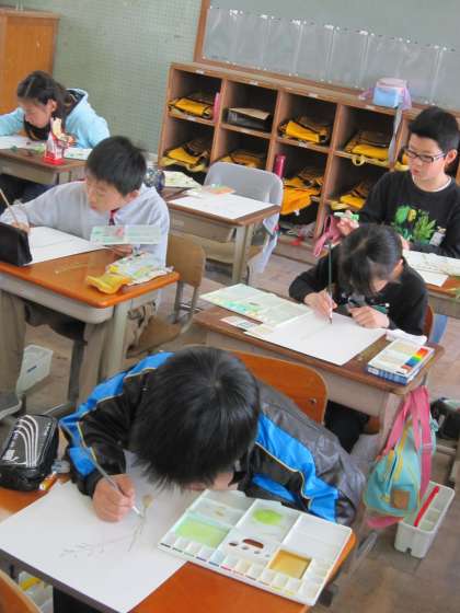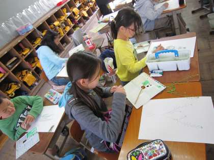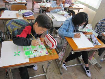 5年2組では,校内にある野草をよく見ながら,絵にしていました。