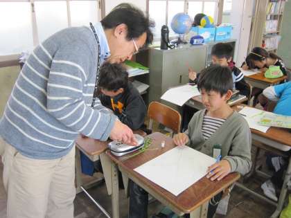 5年1組では,校内の野草を見ながら細い線で表現していました。