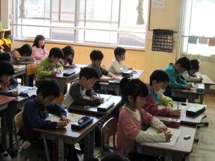 「この言葉はだれが言った言葉でしょうか。」などと担任からの問いに,教科書の文を読み直しながら考える子ども達です。