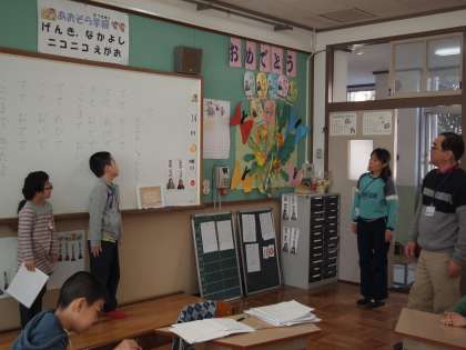 今日から日直さんが朝の会をリードしていってくれます。今年は2人で進行させるそうです。よろしくお願いしますね。