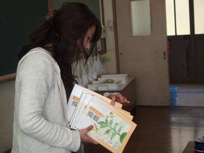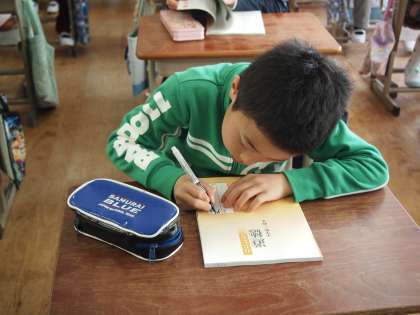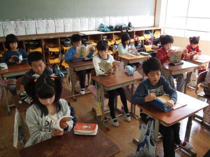 4年1組では道徳の本を配っているところです。「3・4年生の2年間を通じて使うものなので大切に使ってね」という話がありました。「えらい分厚いなぁ〜」と子どもたちはつぶやいていましたが,みんなでしっかり勉強しましょう。