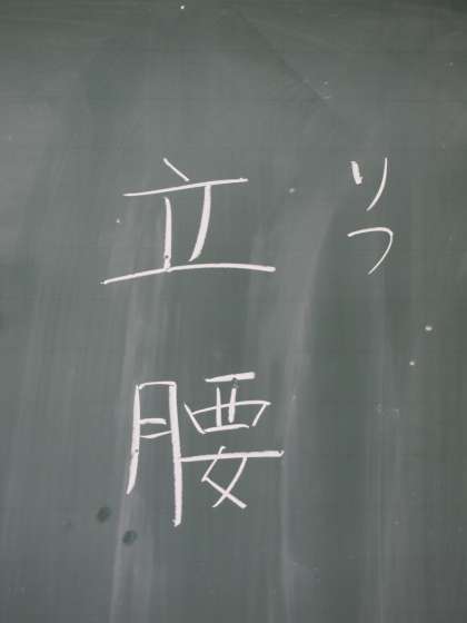 6年1組の黒板にはあまり見なれない言葉が書かれていました。「立腰」と書いて「りつよう」と読みます。