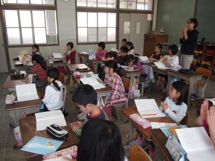 3年1組は国語の時間。谷川俊太郎さんの「どきん」という詩の音読です。「みんなの前で勇気を出して読んでくれた人はえらいね」と担任の先生からお褒めの言葉がありました。