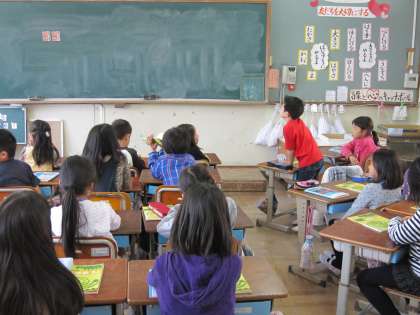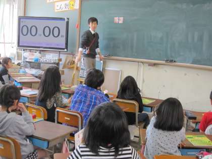 3年2組では,「チョコレートを4つずつ8人に渡すと,何個必要でしょうか」という問題をみんなで考えていました。