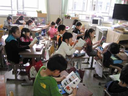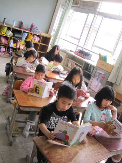 朝の読書の時間に,3年1組の前を通るとだれもいないのかと思うほど静かでした。