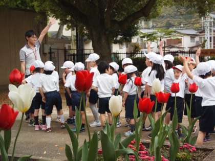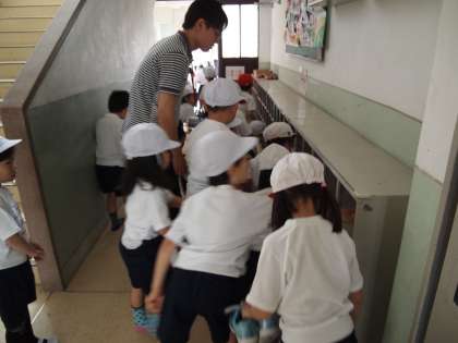 1年2組はならんでろうかから運動場へいくところでした。ろうかで目が合ったので小さい声で「おはようございます」とみんながあいさつをしてくれました。そのあとも行儀よく歩いて運動場へ向かいました。