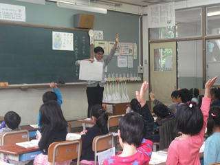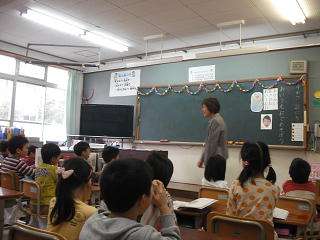 国語「うたにあわせてあいうえお」の授業を行い,「あいうえお」の口の形を意識して元気いっぱい声に出して読みました。