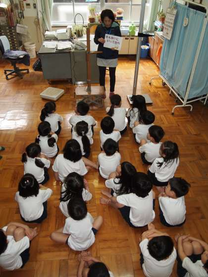 1年生にとって今日は初めての3計測(身長・体重・座高)でした。みんな保健室の先生のお話をとても真剣な表情で聞き入っていました。