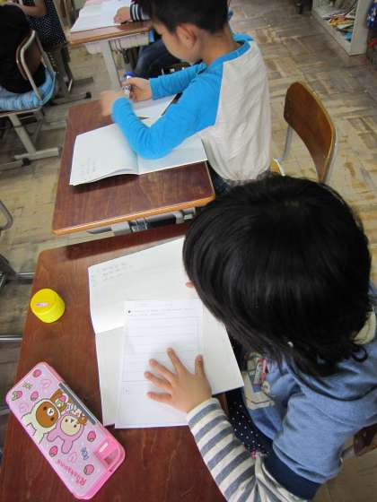 今日は,好きなところを書き写し,そのわけを書こうとしていました。