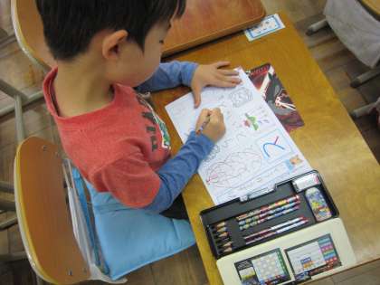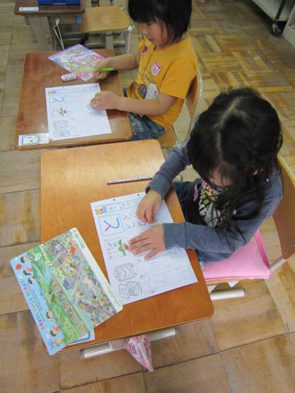 「と」の練習に励んでいる子どもたち