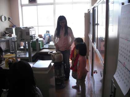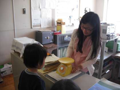 みんな興味津津でした。中にはg量りの目盛りを読んでいる子もいました。