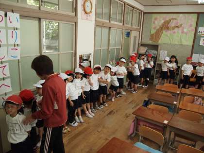 1年1組では背の順で並ぶ練習をしています。これから運動会の練習が入ってきます。スムーズに並べるようにしましょう。
