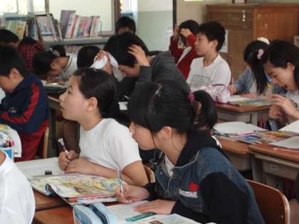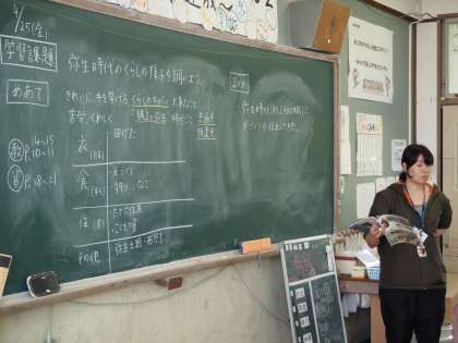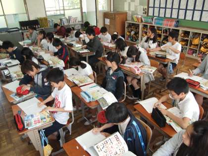 6年2組は社会の時間。「弥生時代のくらしについて考えよう」ということで,資料をもとに自分の知識や経験を駆使して思いを巡らせています。