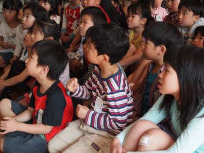 中間休みは「ぱたぽん」さんの読み聞かせです。今日は林明子さんの『はじめてのおつかい』でした。みーちゃんは胸のドキドキに負けずに「牛乳くださ〜い!」と大きな声で言えましたよ。
