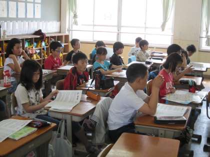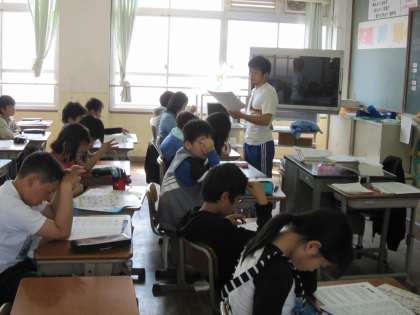 6年生の教室では,来週の予定表を配って説明をしていました。