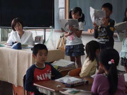 3年1組は国語の時間。『きつつきの商売』をグループごとに前で音読していました。まだまだ完成には遠いですが人前で相手に届く声で話す・読むことは本校児童の大きな課題でもあります。